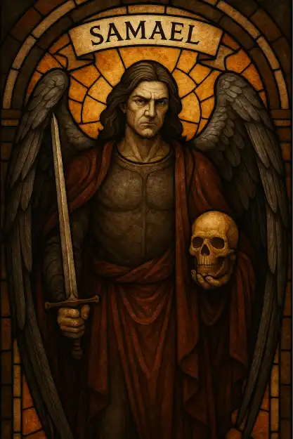 Descrição: Chamado de “Anjo da Morte” em várias tradições, Samael é temido por sua ligação com a destruição.